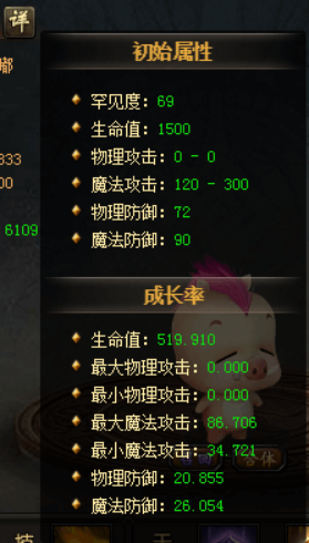 初始属性:表示幻兽1级时的属性,包括:初始生命、初始最小物攻、初始最大物攻、初始物理防御、初始最小魔攻、初始最大魔攻、初始魔法防御。