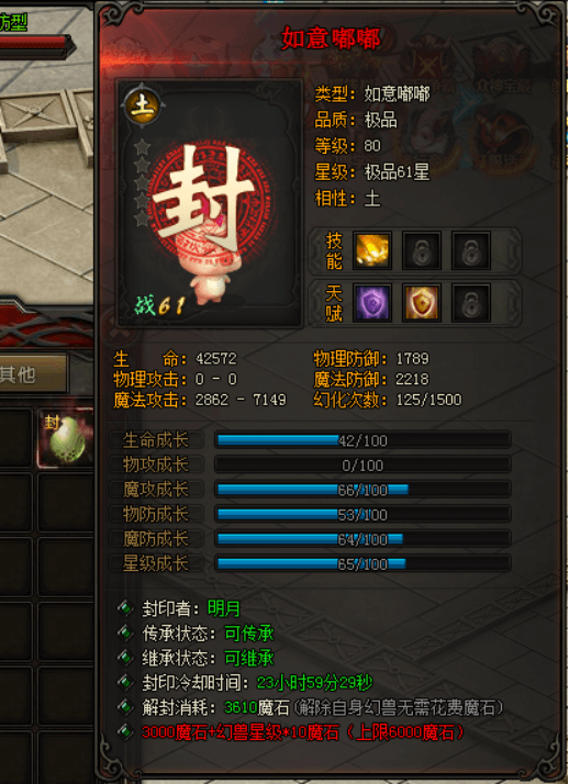 幻化次数:这里显示的是这只幻兽的转世总次数。