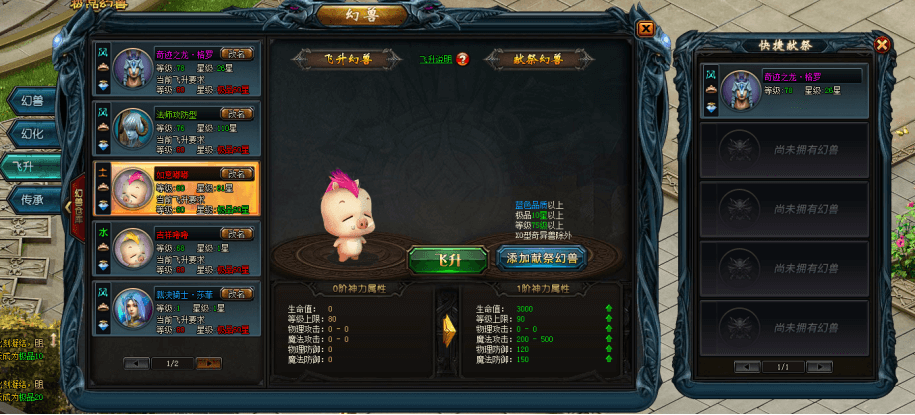 选择合适的材料幻兽,进行献祭。献祭幻兽将在飞升完成后消失。