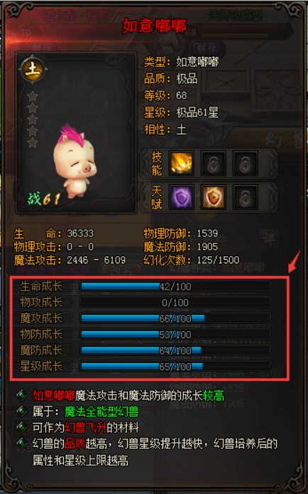 成长率:显示的是幻兽的成长率,成长率越高,表示该幻兽属性提升将越恐怖