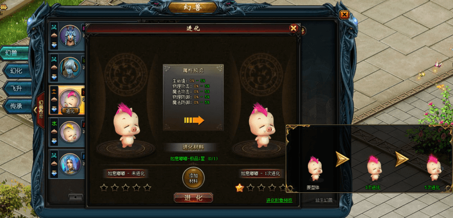 幻兽在每次进化成功后,将会获得大量的百分比属性提升。