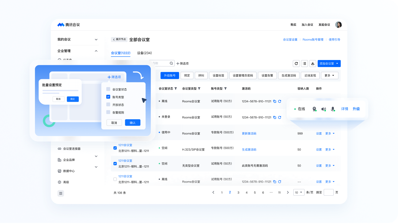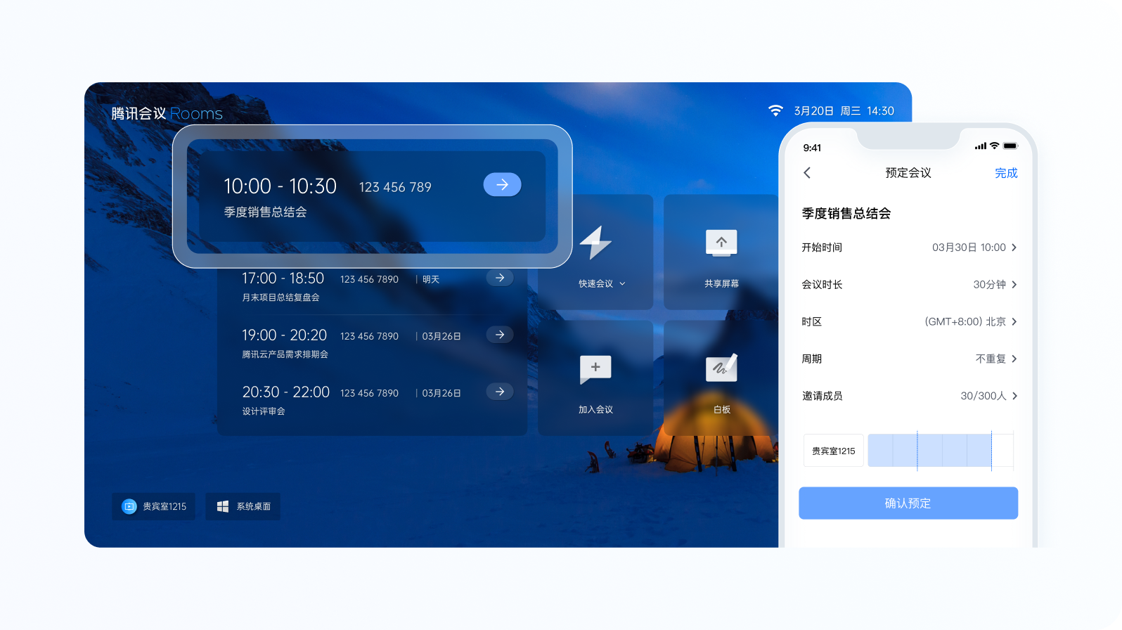 通过腾讯会议客户端轻松预定会议室,Rooms日程同步更新