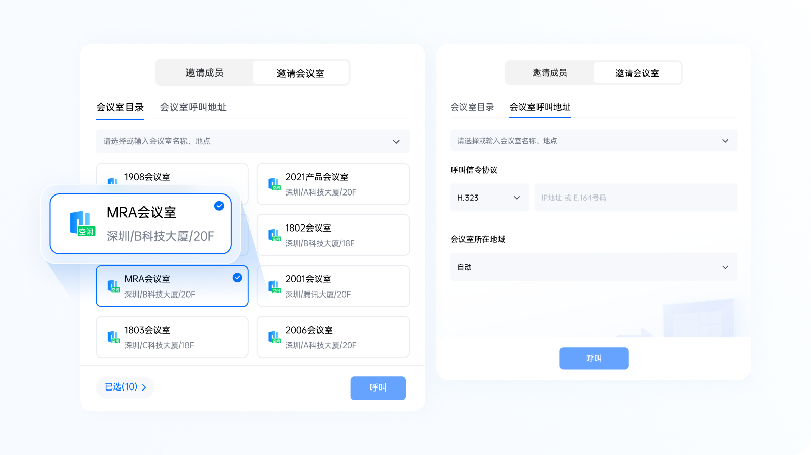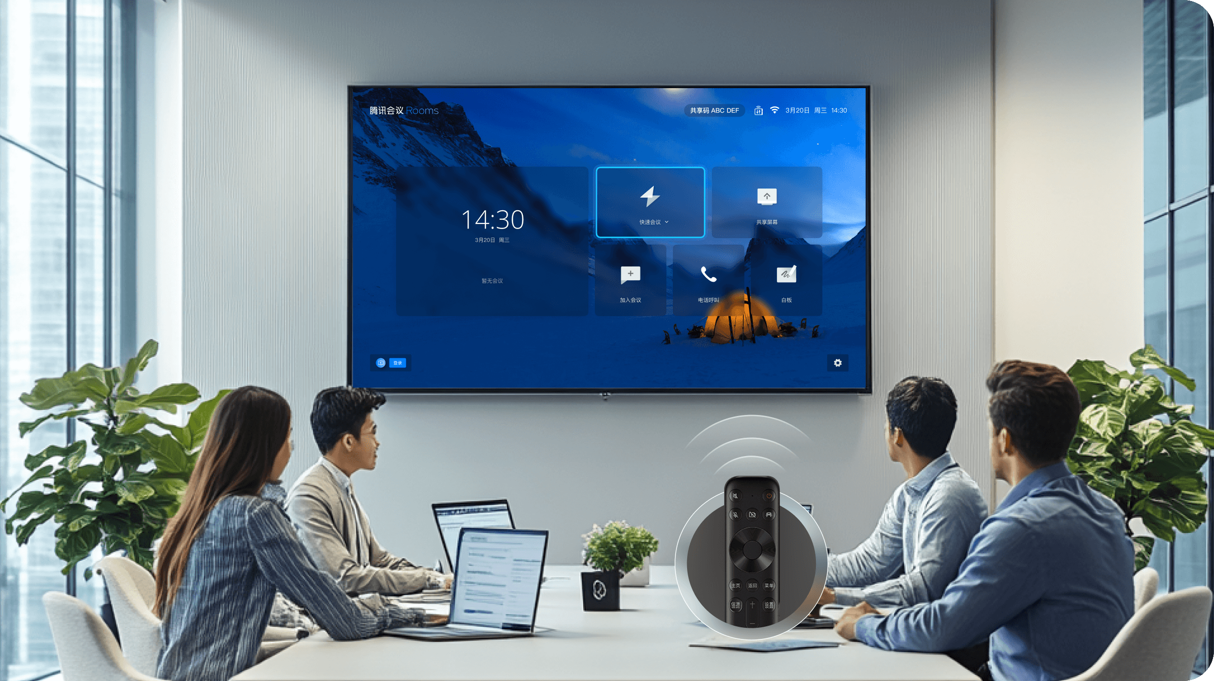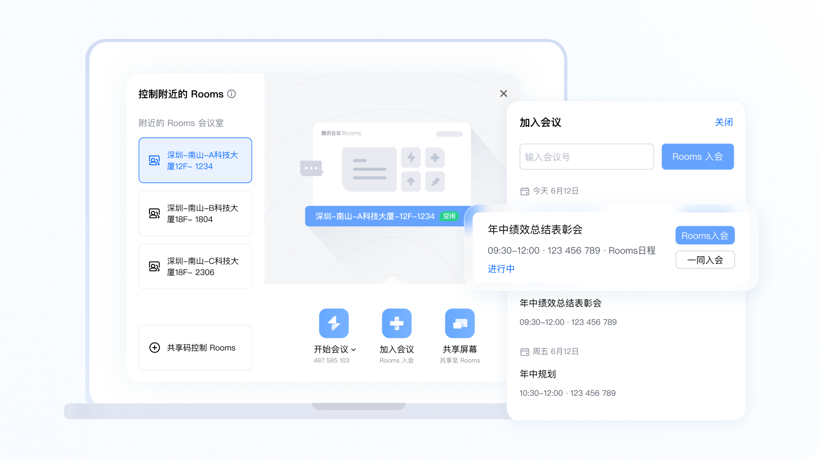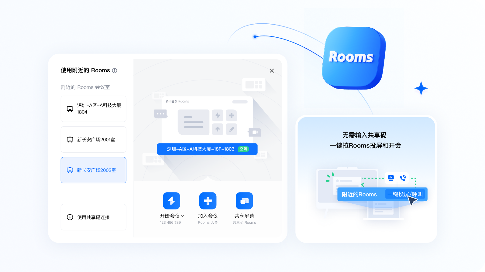 便捷连接附近 Rooms ,一键免码投屏和开会