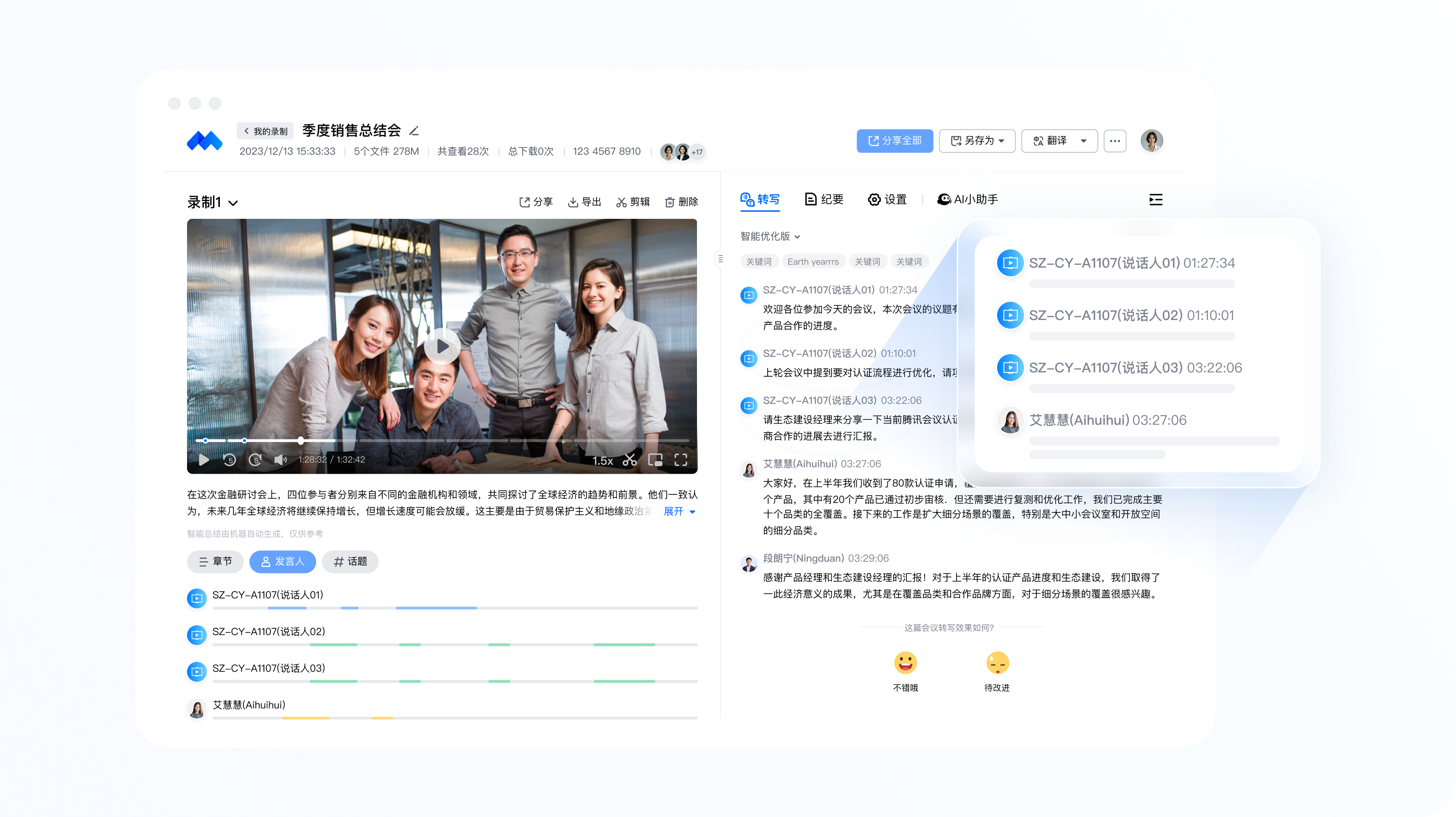 会议室场景按每个参会人分离记录发言,智能纪要更精准