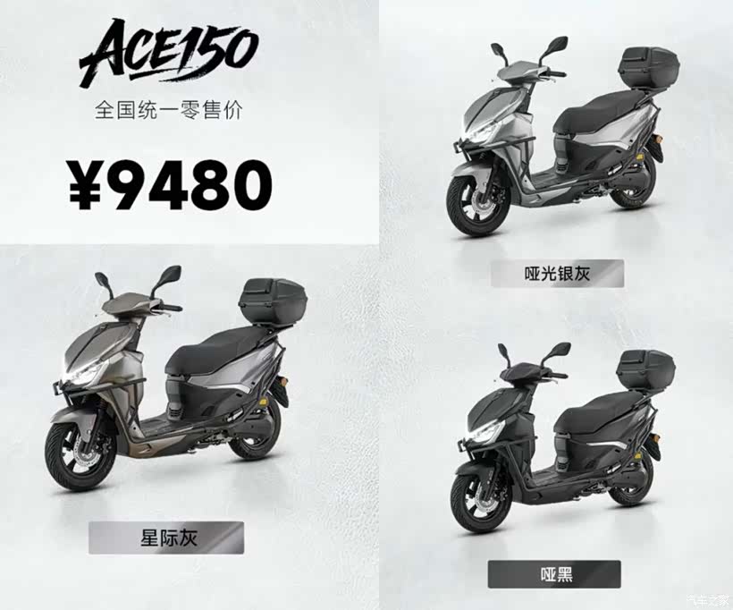 钱江ACE150售价:9480元;出厂自带加粗护杠、大容量尾箱。(哑光银灰、哑黑、星际灰,三色可选)