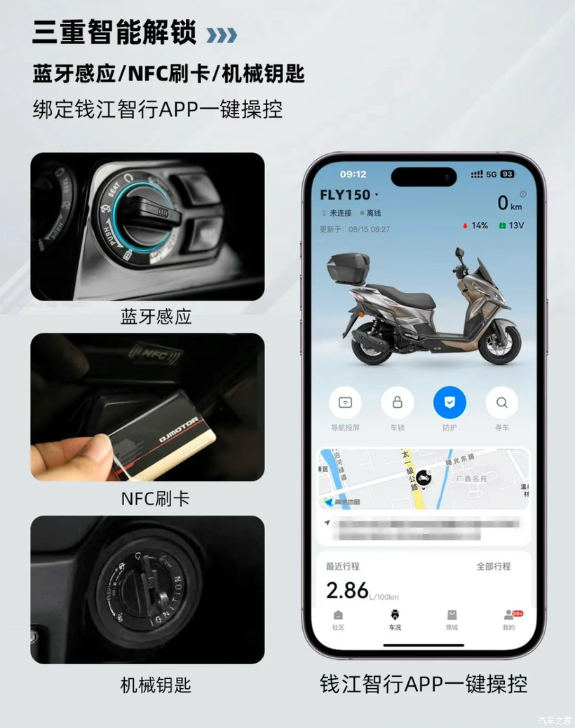 另外FLY150还支持NFC近场感应开启,钱江智行APP解锁,蓝牙感应钥匙解锁,机械钥匙解锁的多种解锁模式。抛开繁琐的钥匙串,如今一台手机就能开启便捷骑行。U***和TYPE-C双充电口的加入也能为手机等电子设备提供电源保障。