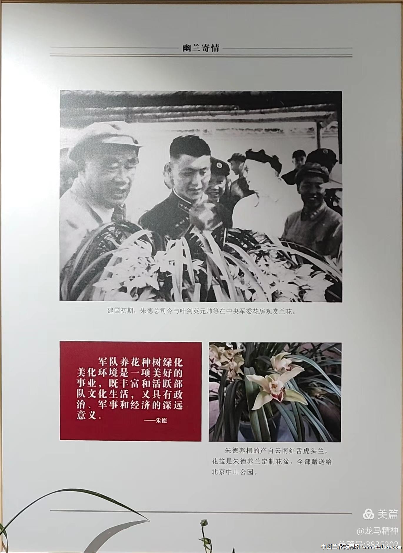昆明安顿好后,朱老总开始养兰。1916年1月朱老总带兵驻扎泸州、宜宾一带,并将全家人接到身边安置,也不忘养上几盆兰花。1922年离开云南时,朱老总从军已13年,深悉云 、贵、川三地,共同成就后来长征 “四渡赤水”、 “飞夺泸定桥”一系列惊天地、泣鬼神的战役胜利。