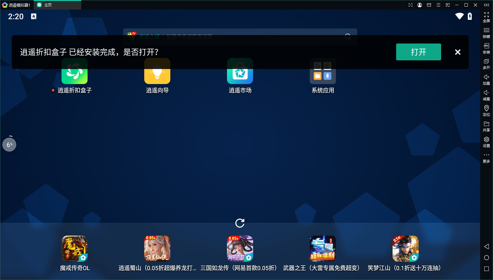 下载好之后直接双击安装,连续点击下一步就可以安装好逍遥模拟器。安装好直接就可以直接打开逍遥模拟器,如果逍遥模拟器在打开的过程中出现卡59%或者99%的情况,可以参考《关于模拟器卡59%及99%的解决方法》进行解决