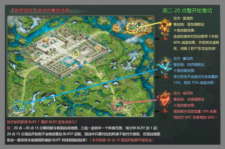 ■跨区万人混战:跨区社交,结识战友,组建最强阵营,体验万人国战盛况!国战前进入困龙阵、磐石阵、破军阵阵旗集结,获国战增益效果。更可选择突袭敌方阵旗,摧毁削弱敌军战力,战术博弈开局即始!
