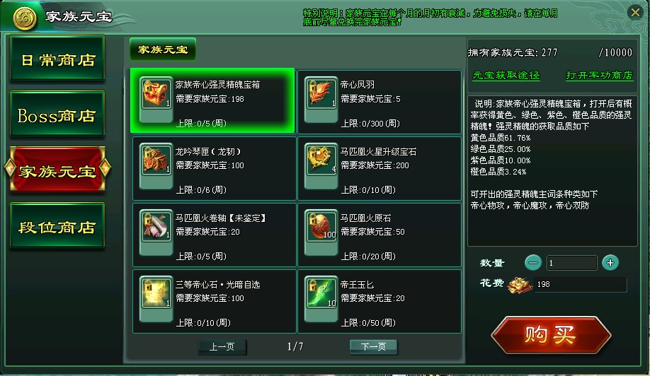 ■BOSS积分商店:加入武魂共鸣强化石、武魂碎片随机宝箱、帝心图鉴碎片宝箱、将军令升级宝石、凰火星转生石碑等稀有奖励。