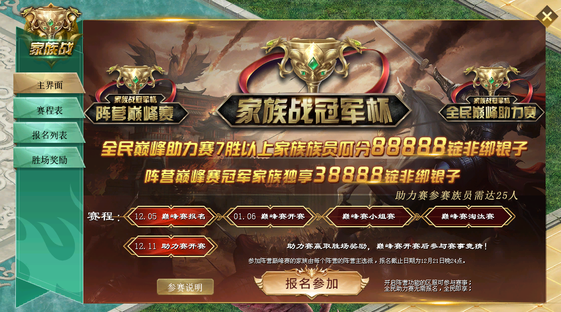 此外,还有华山论剑全区赛、跨区家族战冠军杯开战,邀全区高手对决,瓜分银子,决胜年终!