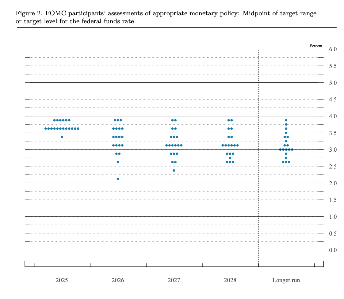 对于未来利率政策前景,19名美联储官员参与预测的点阵图暗示,2026年、2027年或分别降息1次,与9月时的预测一致。不过,点阵图只代表美联储官员就现时数据和形势做出的预测,未来或随着数据、形势发展做出改变。