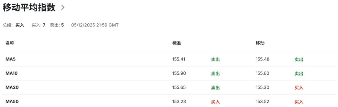 技术指标显示,日线级别布林带上轨切入点指向157.50区域水平为汇价提供短期动态阻力,布林带中轨运行线指向的155.65区域水平为走势提供潜在强弱分化,布林带下轨切入点指向的153.75区域水平为汇价提供短期动态支撑。当前汇价于布林带中轨下方运行,显示空头动能占据相对优势。布林带开口呈现收缩迹象,表明短期波动率有所下降。与此同时,14日RSI相对强弱指标降至53.60附近中性区域,表明当前多空力量维持相对平衡状态,汇价或进入震荡格局。