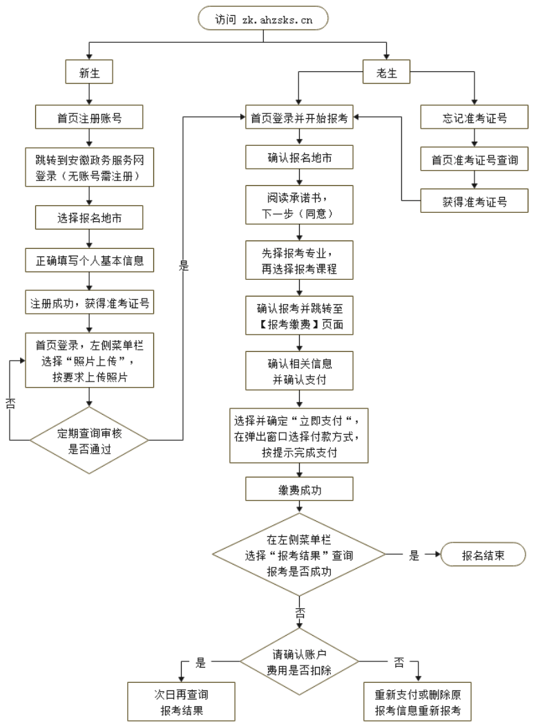 首次参加自考的新生(或更换考试地)需要通过报名系统上传照片,具体方法是:新生在报名网站首页注册后,获取准考证号,用准考证号登录报名系统,点击左侧菜单栏的“照片上传”,按要求上传规定格式的照片。上传的照片由各市教育考试机构(自考办)审核,照片审核通过后方可选择报考课程和缴费。数码照片规格见附件1:高等教育自学考试电子图像采集规范及信息标准。