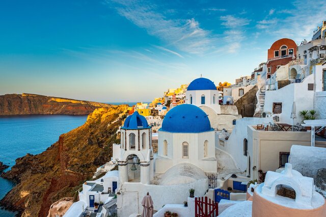 圣托里尼岛是3500年前火山爆发最活跃的板块之一,如今火山口仍被几百英尺的火山岩堆积物包围着。这里有典型的爱琴海风光:阳光、沙滩、大海、蓝天、白房子,是人们梦想中的蜜月度假胜地。圣托里尼岛由三个小岛组成,大的叫锡拉岛,小的叫锡拉夏岛,中间的一个岛是沉睡的火山岛尼亚卡梅尼。景点集中在锡拉岛,岛上坐落着...当地最有名的费拉镇和伊亚镇,游客多在此。 【 详细>>】