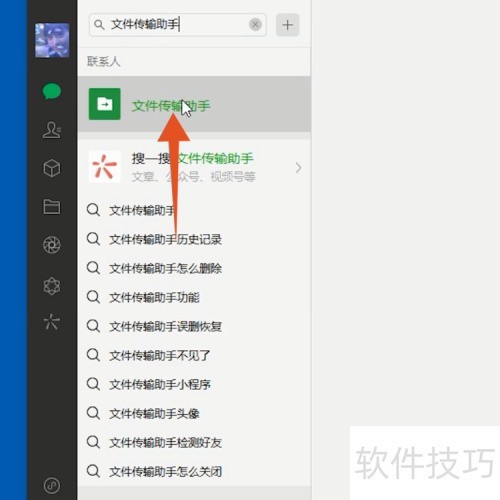 6、 弹出搜索选项后,直接点击文件传输助手即可。
