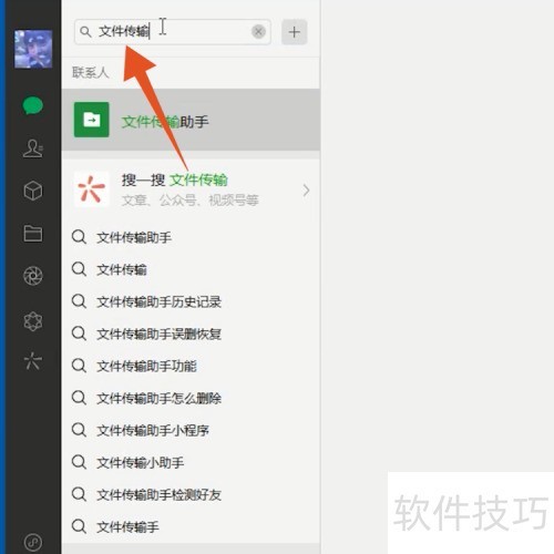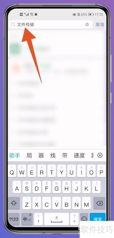 4、 打开搜索界面,在搜索框输入文件传输助手进行查找。