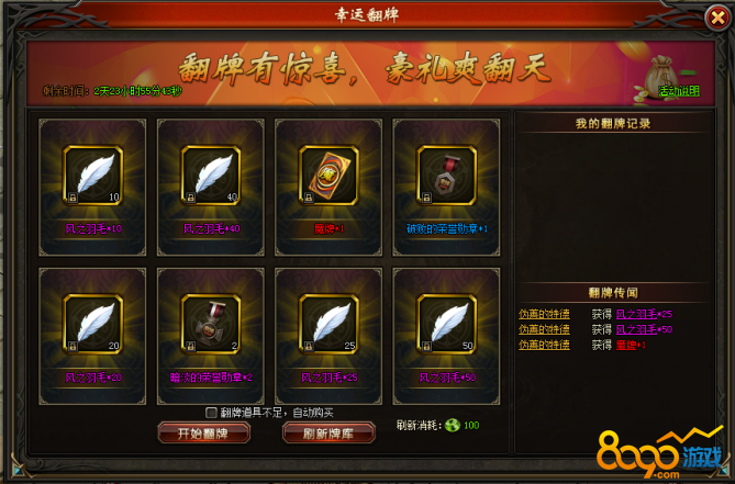 2、 牌库刷新成功,可开始翻牌,奖励随机位置分布