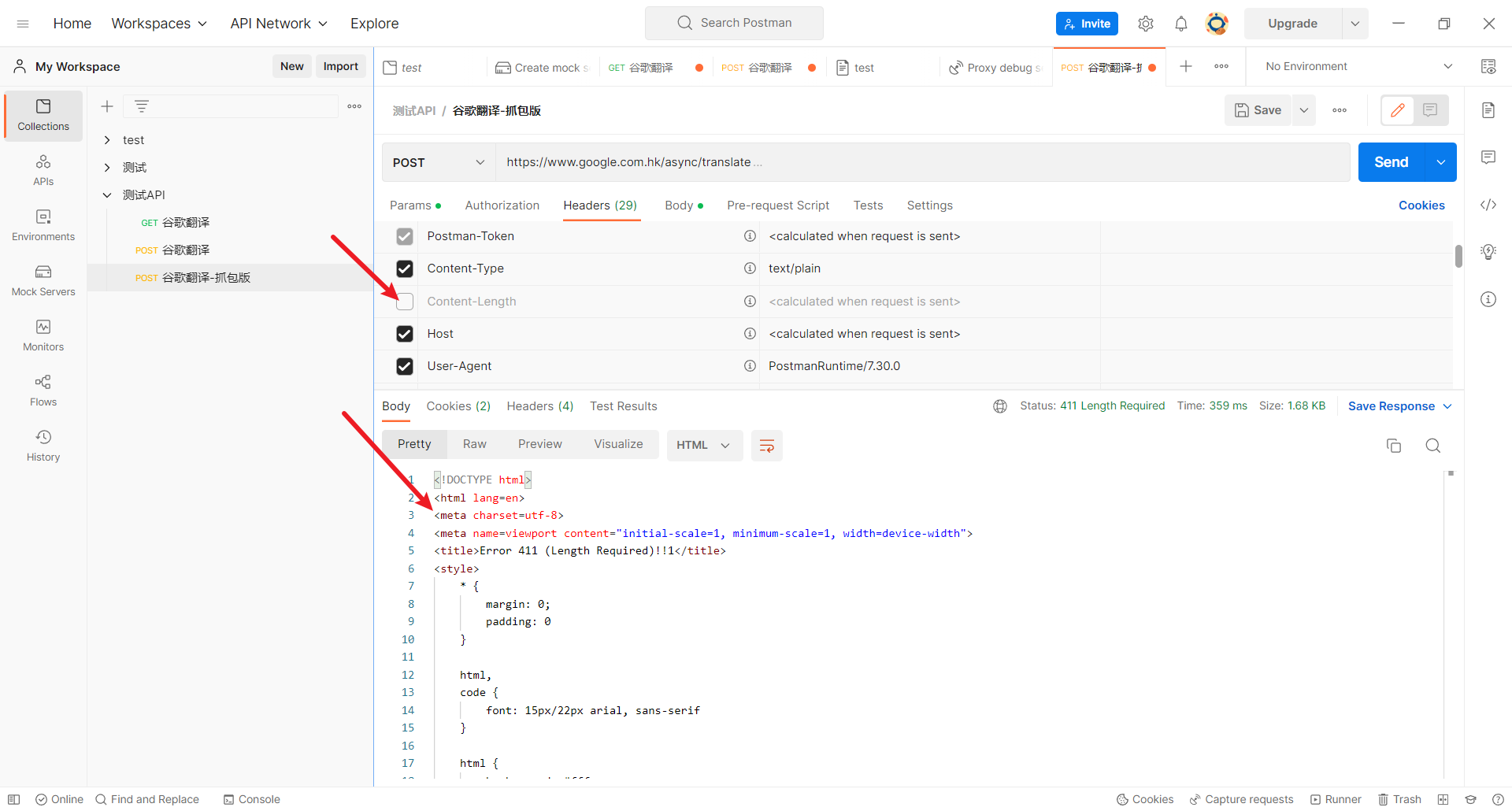 去掉Content-Length之后就无法返回结果了 #设置的headers参数不够