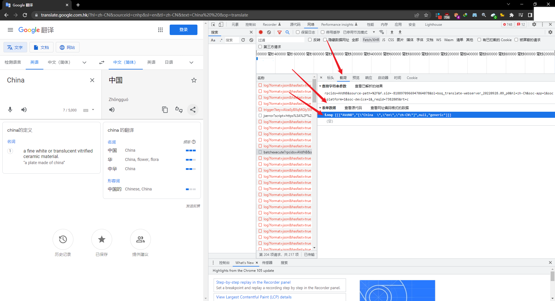 谷歌翻译大约每秒会请求一次,我们很快就可以得到谷歌服务器返回给我们的翻译结果,经过排查,下面的这个batchexecute开头的请求就是我们需要的,