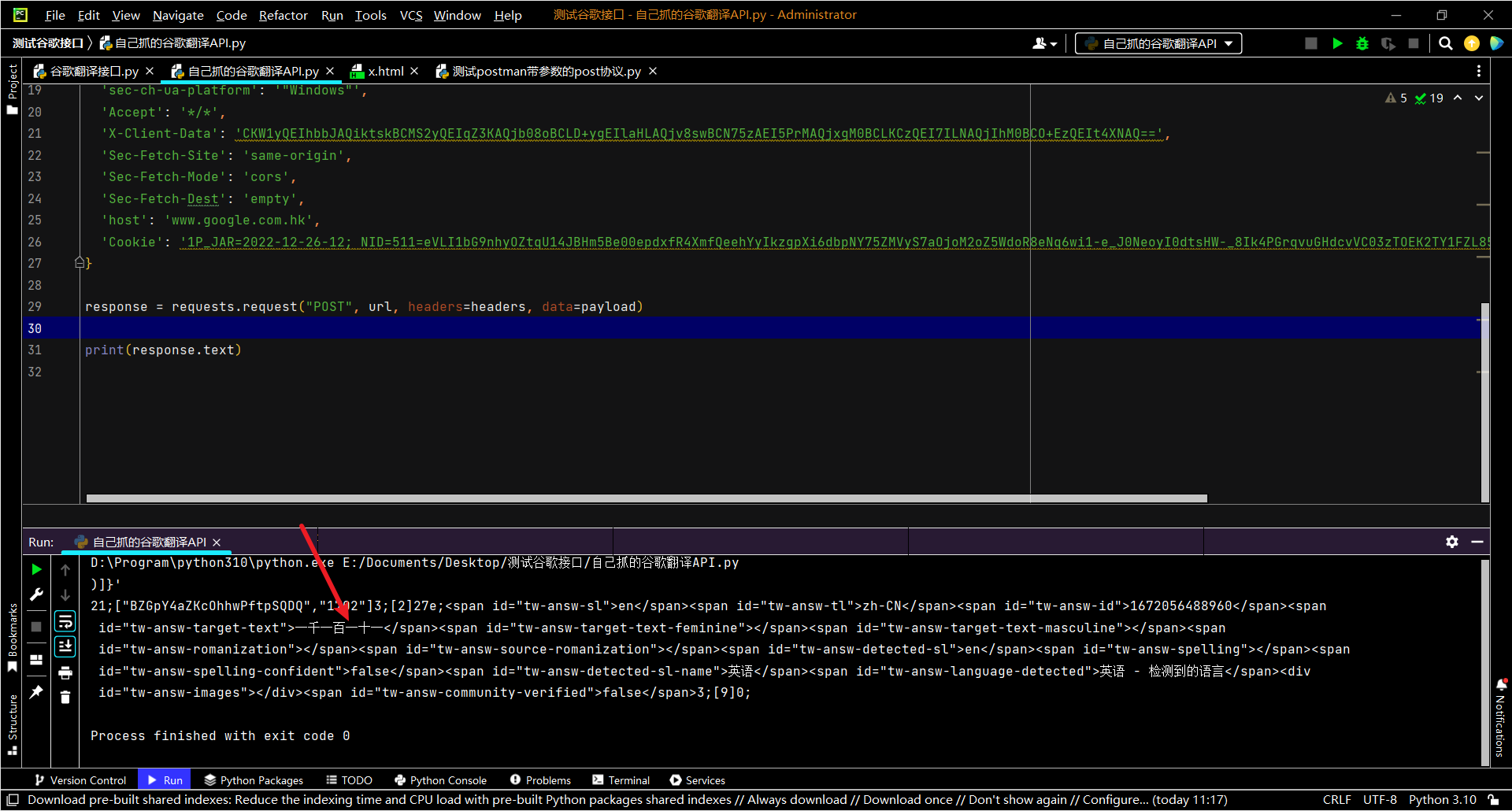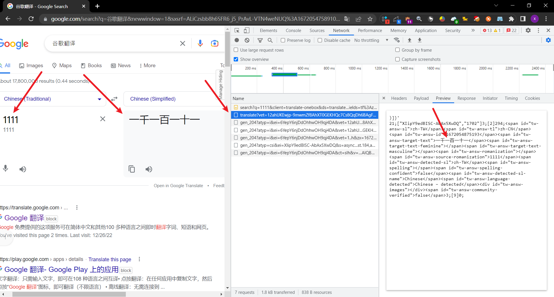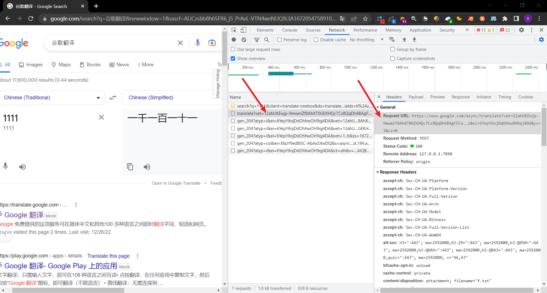 上面的方法是适用的,只不过是现在这个接口没有以前好找了,我们使用谷歌搜索引擎上提供的谷歌翻译来找这个接口