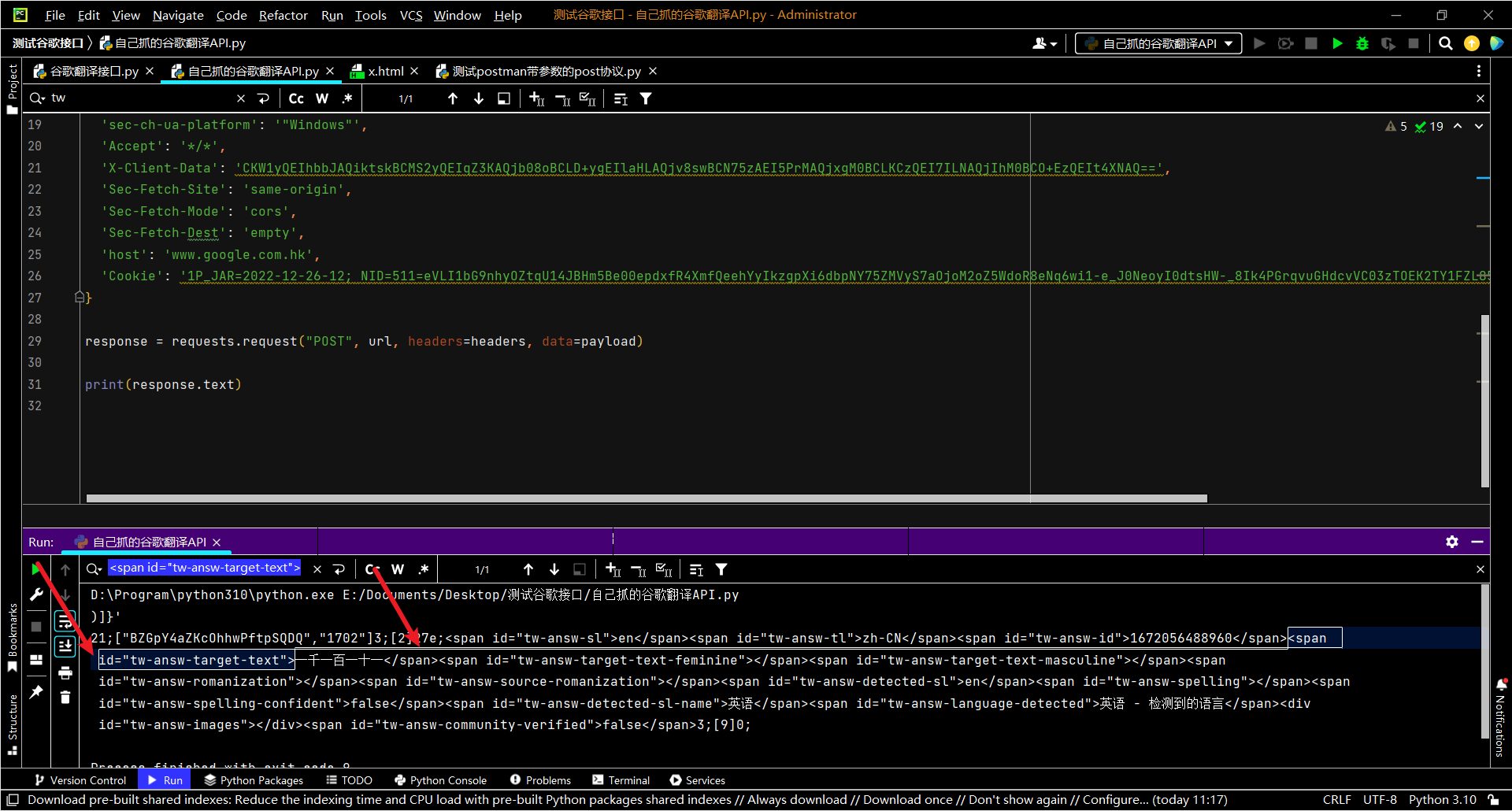 返回的是一个404的网页,而不是自己想要的翻译结果,