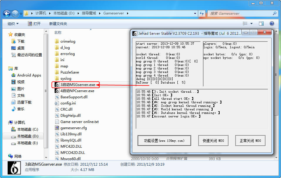 第四步:点击Gameserver目录下的3启动MSGserver.exe,如下图所示即为启动成功。这一步启动可能会比较慢,请耐心等待。