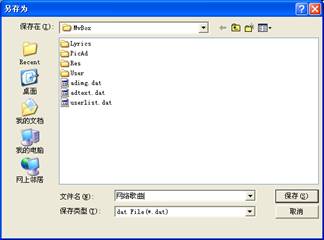 MVBOX系统提供了分组管理列表的功能,用户可以自建列表,分门别类管理自己的歌曲、素材、特效等,所以为了保存数据不丢失,MVBOX具有保存列表和打开列表功能;在某个列表名上右键点击鼠标,在弹出的菜单中选择保存列表,列表将被保存在用户指定的目录下,一旦需要可以从相应目录用“打开列表”的方法导入原保存列表内容。