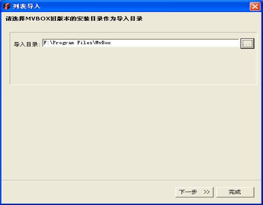 在弹出的列表导入对话框中,选择MVBOX旧版本的安装目录,如图所示: