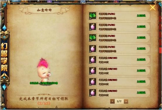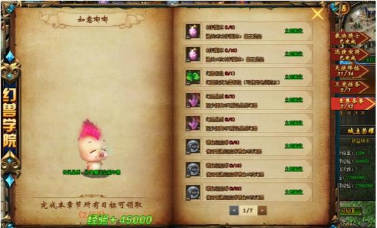 这一页的重点考核在于等级图腾和幻兽塔。傲天魔域永恒小伙伴只需要登记5次幻兽军团图腾即可,通关幻兽塔第20层也就可以了。幻兽相性上除掉之前我们改变过的金相性外,还有木、水、火、土四大相性需要用奇异果来改变,所以,奇异果需要多准备一些喔。