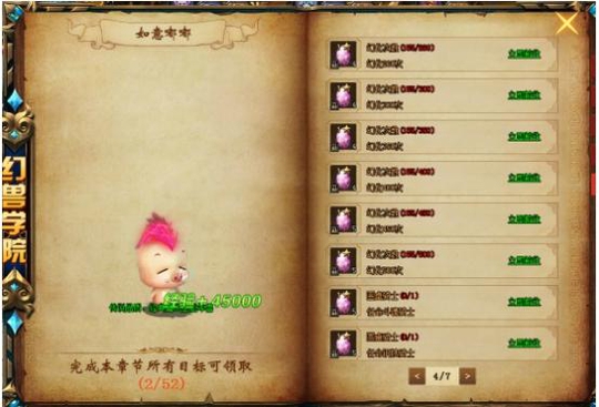 喂食经验球上,这一页要求使用普通经验球喂食30次幻兽,余下的就只针对幸运草幻化的使用,最高要求达到80次。最后还需要不断提升幻兽,等级达到82级才能完成本页任务。