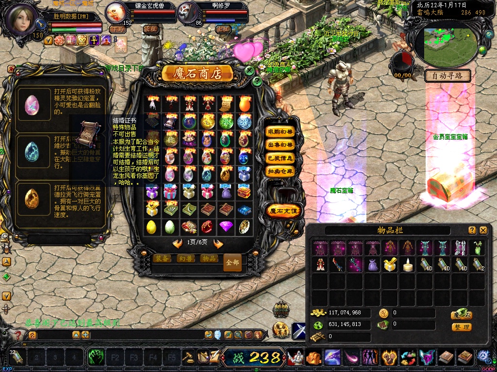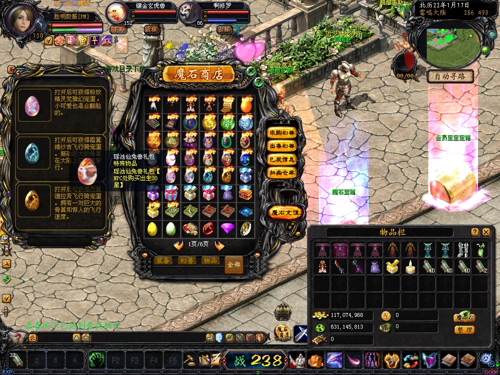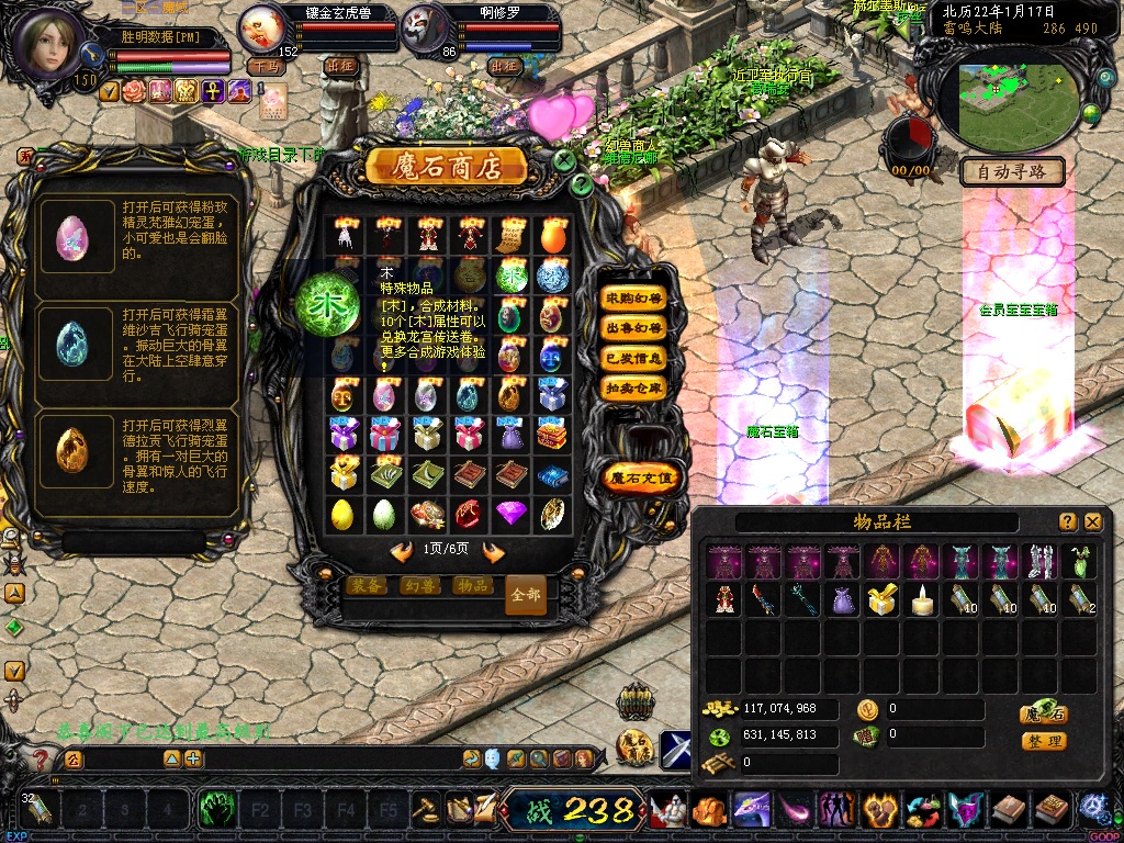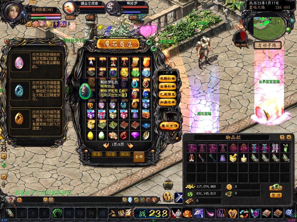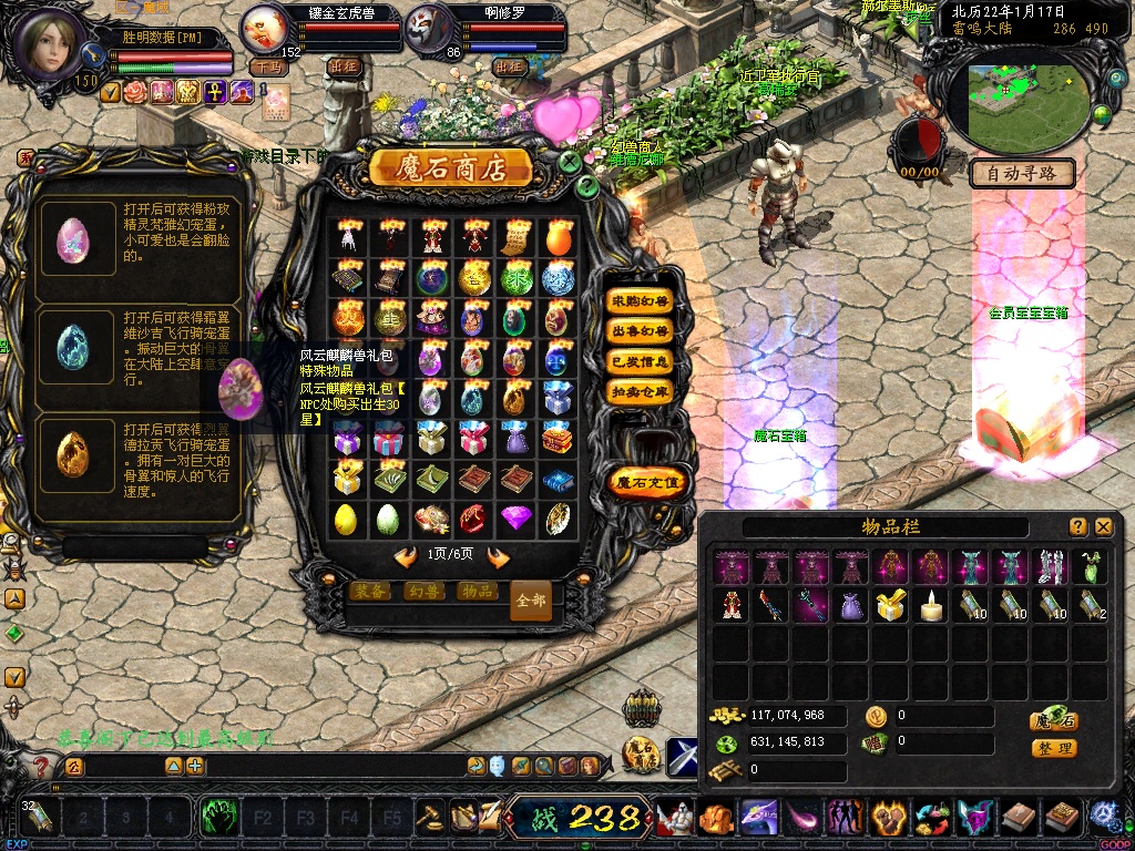 7. BOSS自动入包魔石,全地图的BOSS杀死一只入包10W魔石并爆大量副宠及270点卡、2700点卡等。