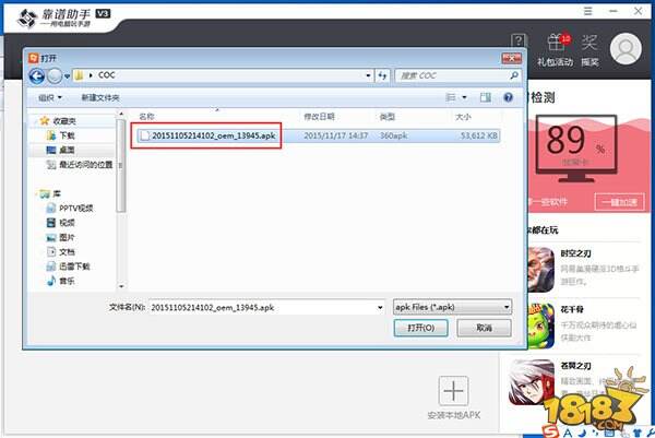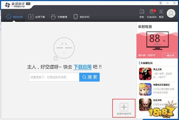 2、将下载好的魔域口袋版安装到靠谱助手中,选择我的应用→安装本地APK→选择存至本地的安装包。