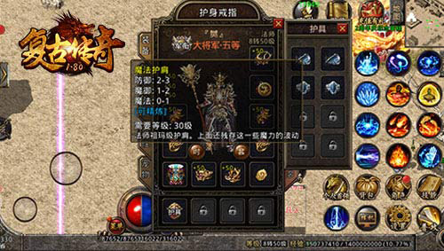 新增护肩、护膝两类装备,酷炫的装备,让玩家外观显得更威武,同时整体属性提升。护肩和护膝都是成对出现,共有4个装备格。分为八个级别:沃玛级、祖玛级、赤月级、魔龙级、强化魔龙级、战神级、星王级和王者级,想要集齐全套装备还是需要一定的时间和精力的。祖玛级、赤月级可以在雷炎洞穴、地下夺宝和猪七夺宝中获得,更高级装备可以在装备精炼师处使用材料合成。集齐全套高等级护肩护膝,提高属性,实力更加强大,将成为大家羡慕的对象。想要新装备的玩家们组队前往挑战吧。