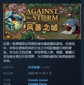 在 Steam 发售后,《 风暴之城 》好评如潮,广大玩家非常喜欢,说明模拟建造 rouguelite 这么个全新的融合玩法,确实有东西。