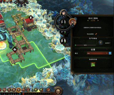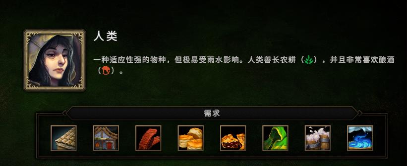 决定位置后,我们可以选择随行的工人,游戏中一共有四类物种:人类、蜥蜴人、海狸人和鸟身女怪,它们各自有着不同的特性。
