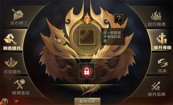 提升等级:可以使用魔幻晶石进行锻造,会失败但是不会降低装备等级。