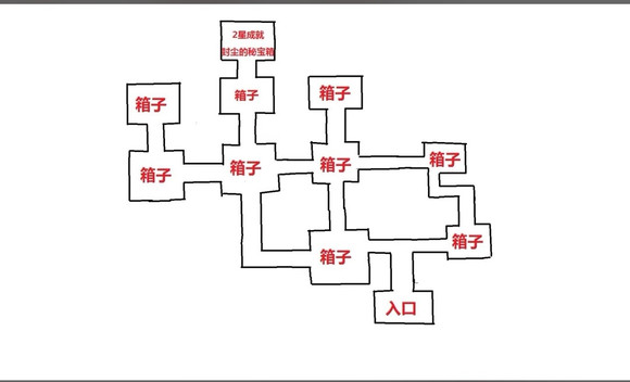 迷城这个成就,本来很麻烦,但是大佬手绘了一张地图,现在我们直接跑就好了,但任然要注意,进去看见怪直接打死,有个较为大一点的怪会给一个钥匙,用开启二星成就的宝箱如图,然后就要再次拿起你的小笔记,记下那个位置的箱子有线索,以后直接就奔着这几个箱子去,毕竟只能开