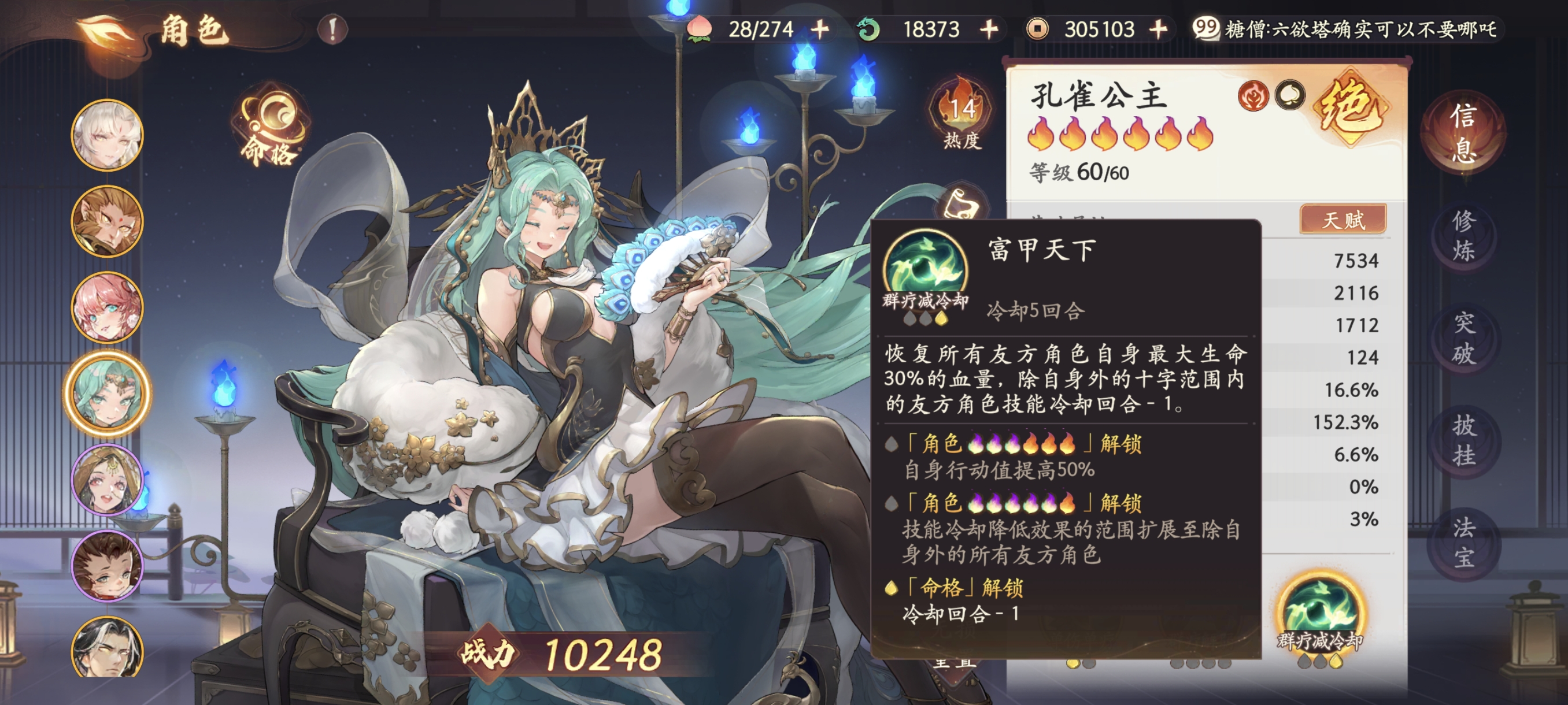 4、孔雀公主的3技能可以在治疗的同时,使自身十字范围内友方技能冷却回合-1。