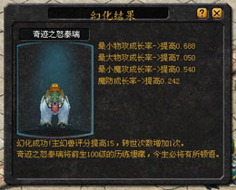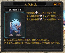 初始值幻化是百分百成功的,而且在幻化时可以先行预览幻化后的初始值。幻化成功后主幻兽回到一级,以新的初始值重新开始。副幻兽消失。