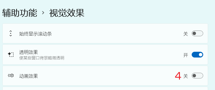 将「动画效果」关闭。