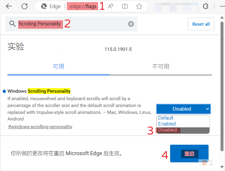 edge浏览器翻页滚动条有平滑效果,魔域时间跟百度不一样啊滚动速度较慢,有些许晃眼;不喜欢者可尝试本方法。