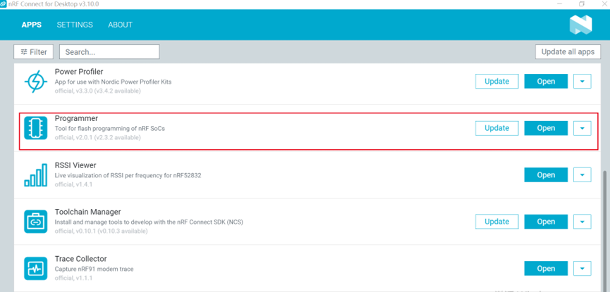 下载安装完成后,打开nRF Connect for Desktop,安装Programmer插件。