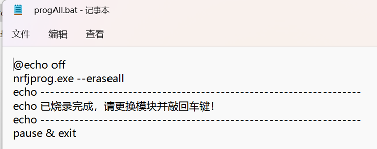 因为可以使用nrfjprog命令行烧录程序,我们可以将这些命令打包成批处理的形式,实现一键烧录的效果。
