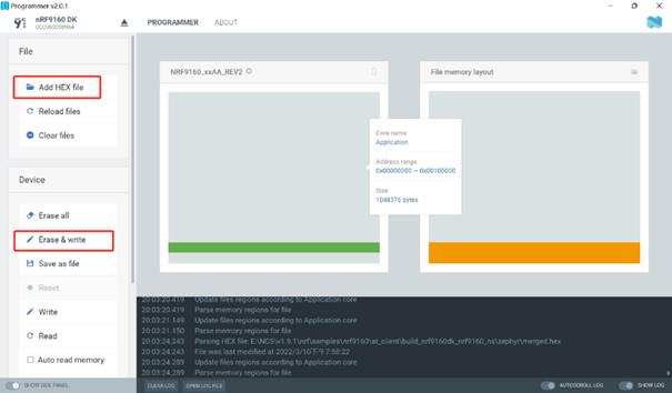 这里需要的注意的是nRF91系列Modem的固件也可以通过此方式烧录,只需要把xxxxxx.hex换成xxxxxx.zip即可。(Modem固件为.zip,可以去Nordic官网下载)