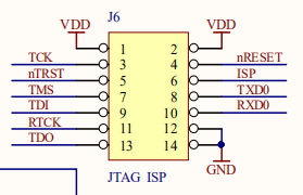这是做jlink头这边的接口,根据jlink图很容易知道需要4、7、9、15线,用杜邦线解出来就好了。一般是红色的为1脚,往后数就行了。没法确定的话,自己用万用表测量一下。 接下来需要从硬件上将GND(地线)、TMS(数据线)、TCK(时钟线)、NSRST(重启线)接出来对上就好了。
