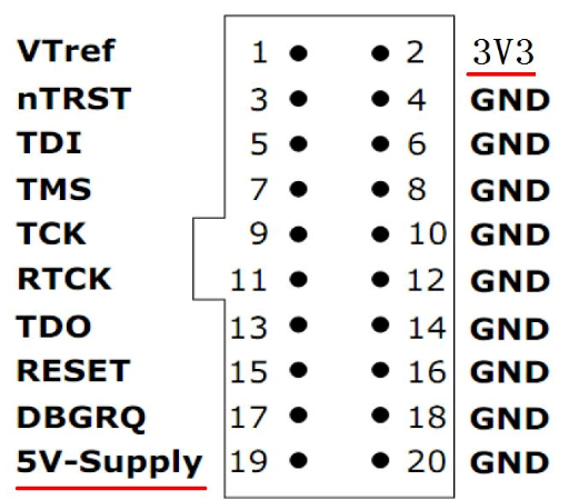 首先知道SWD需要Jlink的脚是GND(地线)、TMS(数据线)、TCK(时钟线)、NSRST(重启线)。所以得得将jlink这几个角引出来。