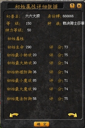 看到我们的各项初始数据不难发现:全满,也就是说我们这只莎菲的初始各项数据全部都是满的,都是极限的了