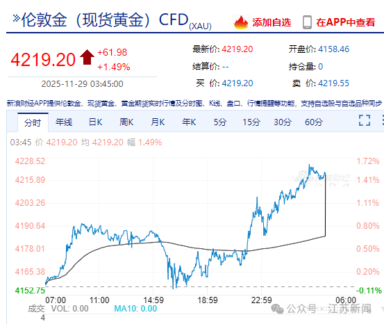 11月28日晚间,魔域角色名字现货黄金(伦敦金现)直线拉升,盘中一度突破4200美元/盎司,刷新近两周盘中新高。目前,现货黄金报4219.20美元/盎司,涨1.49%。