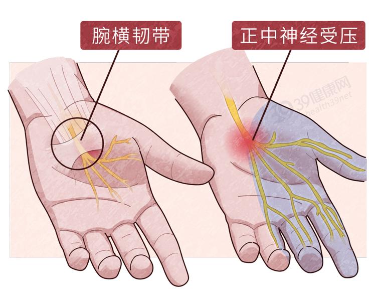 也叫“鼠标手”,这个病初期通常表现为夜间间歇性的手部感觉异常和麻木。随着病情发展,患者可能会经历手部感觉减退,包括拇指、食指、中指、腕部和手掌的麻木和疼痛,手指变得不灵活,难以拿稳物品。严重情况下,症状还可能包括肌肉萎缩,甚至出现间歇性的皮肤苍白和指尖坏死。